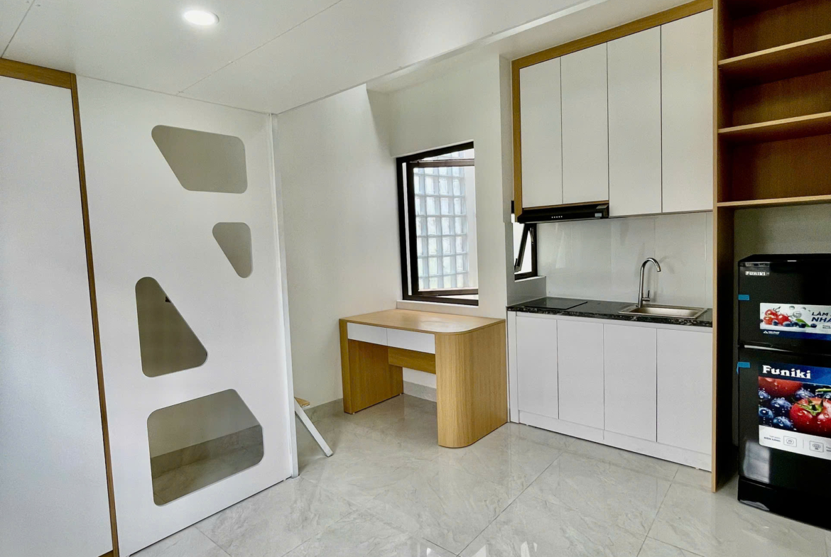 🛌 Nội thất: Giường, tủ quần áo, tủ bếp, bếp từ, hút mùi, điều hoà, nóng lạnh, tủ lạnh, bàn làm việc, máy giặt riêng (trục 03,04)