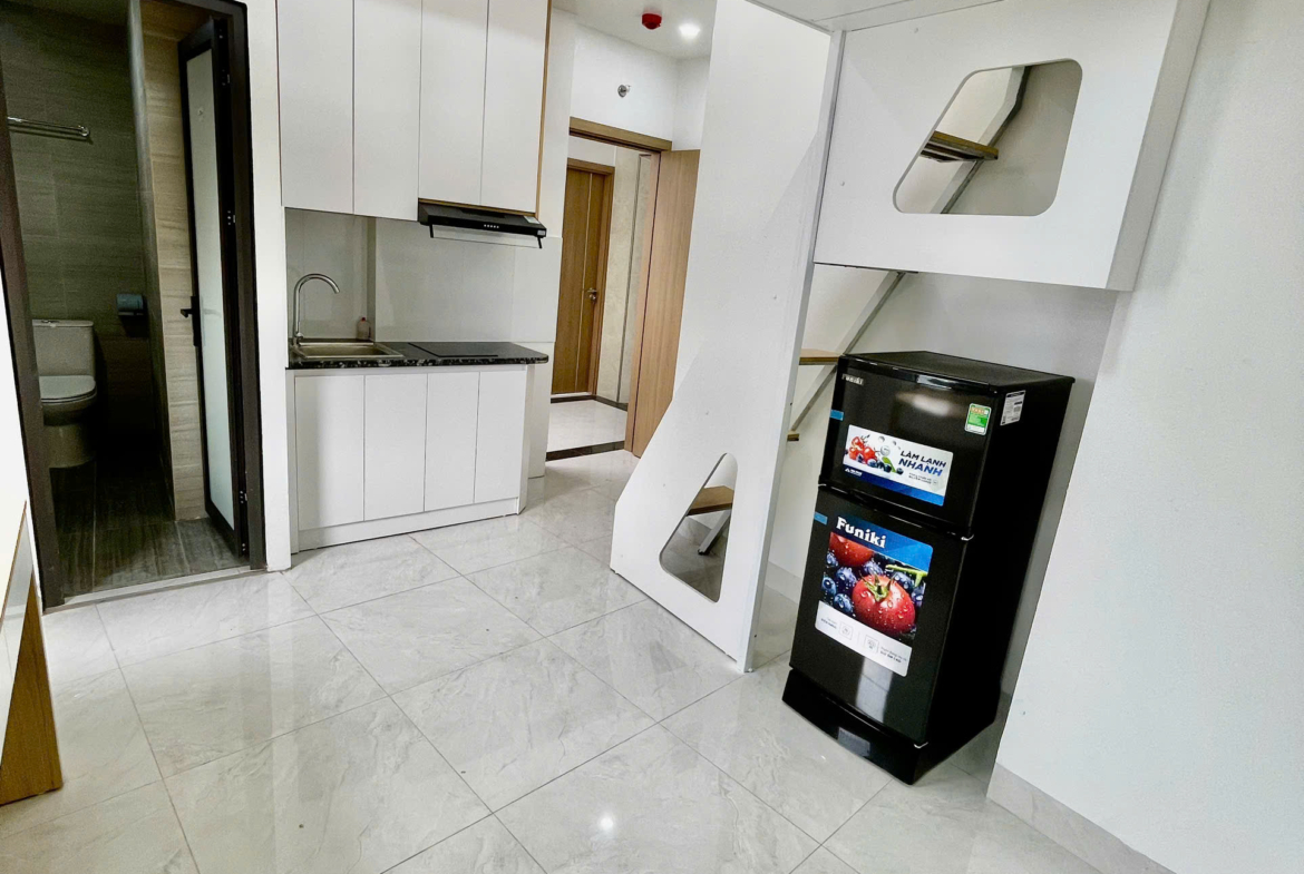 🛌 Nội thất: Giường, tủ quần áo, tủ bếp, bếp từ, hút mùi, điều hoà, nóng lạnh, tủ lạnh, bàn làm việc, máy giặt riêng (trục 03,04)